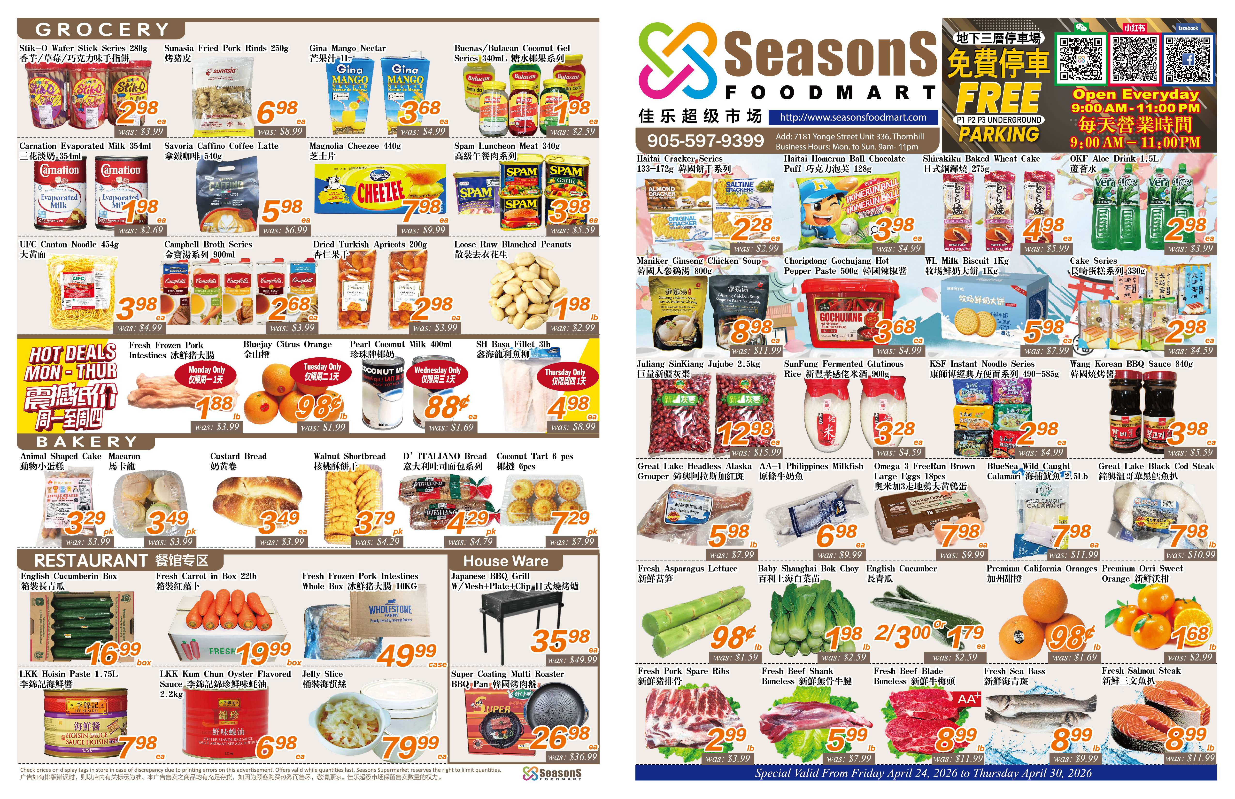 Seasons Foodmart is a unique supermarket which is keen to provide diversified products and service to meet need of different ethnicities. Its first store with area more than 40,000 sq. feet located at Brampton started the business on June, 2010.  During the past years of operation it proved its success in establishing stable clientele and rapidly growing business.